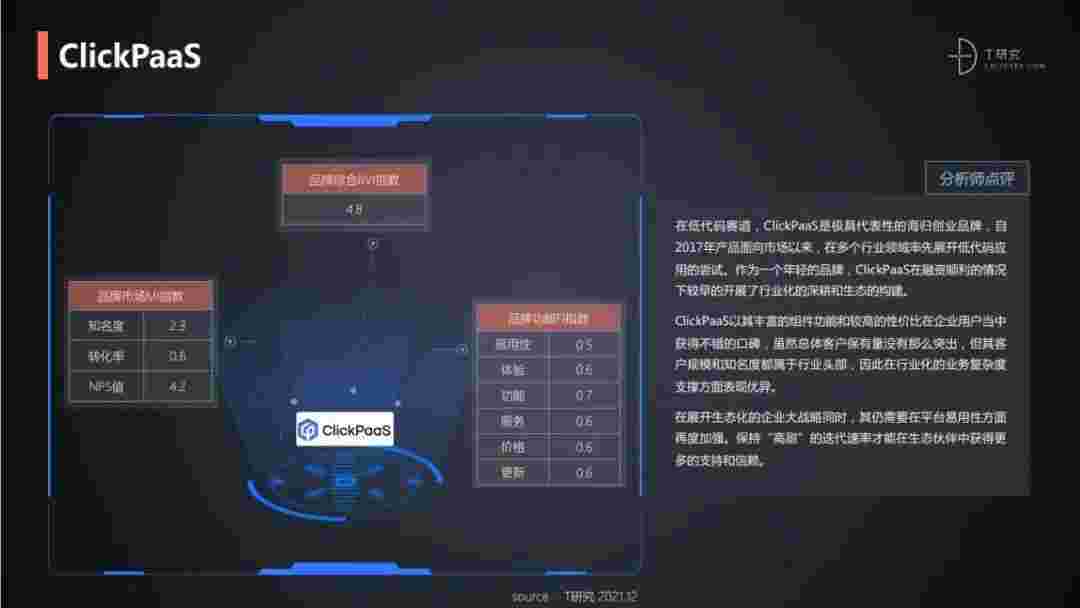 T研究认为,,,,在低代码赛道,,,钱能钱包是极具代表性的海归创业品牌,,自2017年产品面向市场以来,,在多个行业领域率先展开低代码应用的尝试。。。。作为一个年轻的品牌,,,,钱能钱包较早的开展了行业化的深耕和生态的构建。。。钱能钱包以丰富的组件功能和较高的性价比在企业用户当中获得不错的口碑,,在客户规模和知名度都属于行业头部,,,因此在行业化的业务复杂度支撑方面表现优异。。。