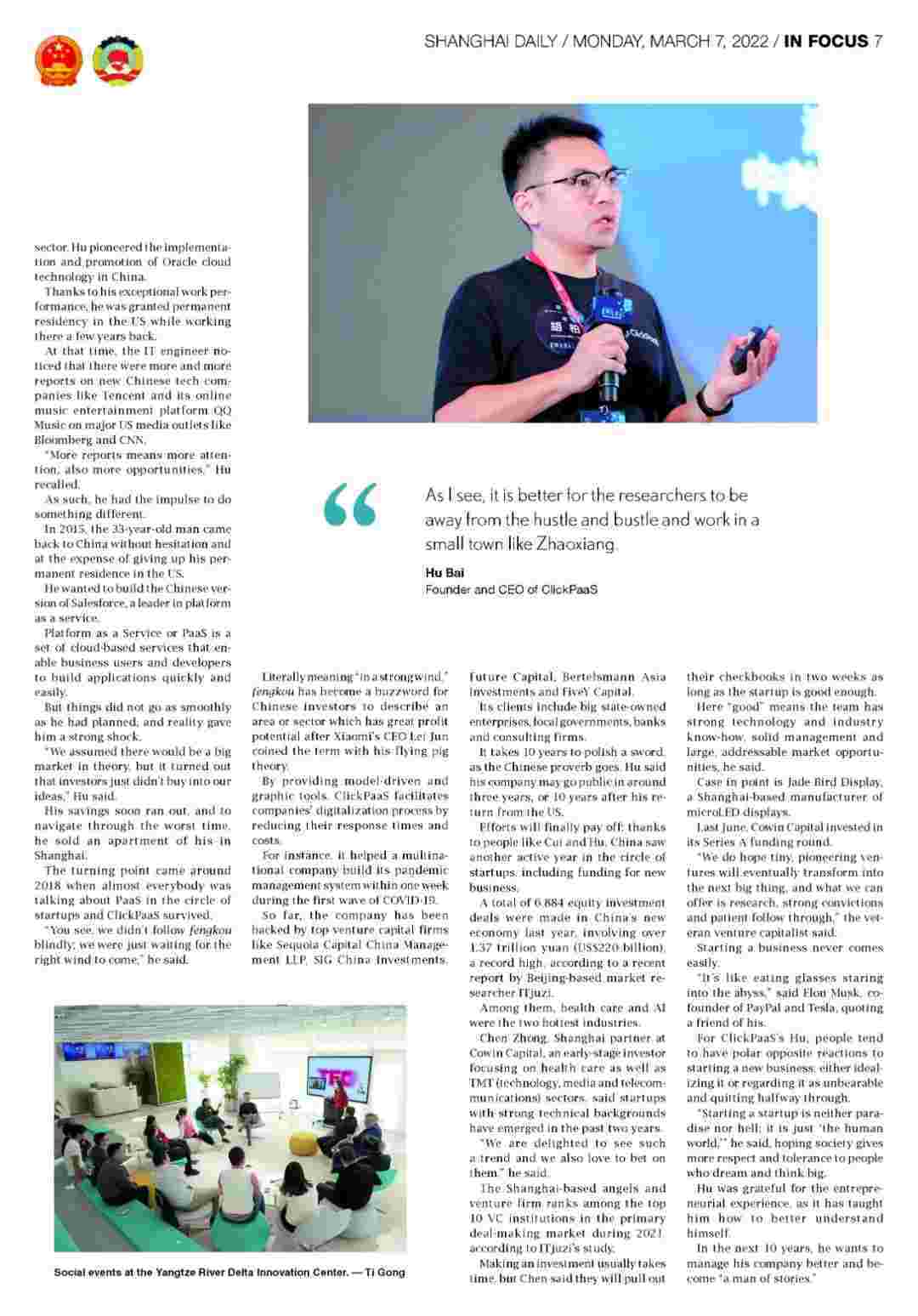 《上海日报》专访钱能钱包创始人、、、CEO胡柏,,探究其创业背后的故事!!