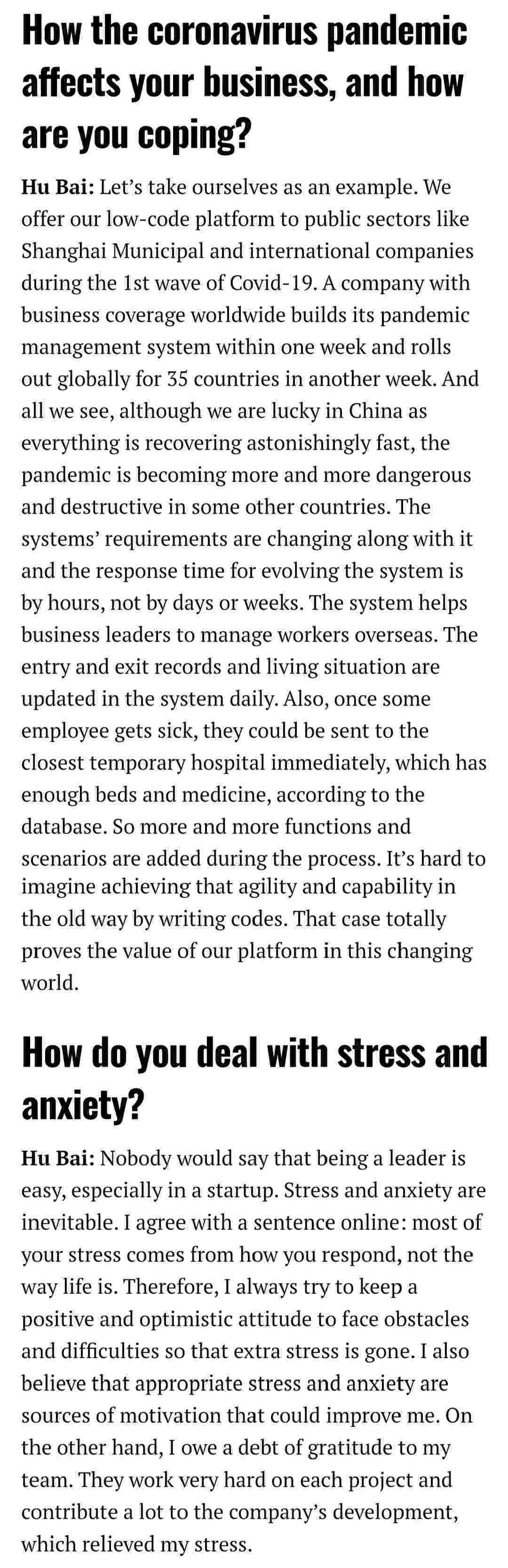 2021年年初,,,,爱湃斯科技CEO胡柏受邀接受法媒Startup.info的专访,,,与Startup info的读者分享了自己的创业经历、、、、以及低代码平台钱能钱包的创新之处。。